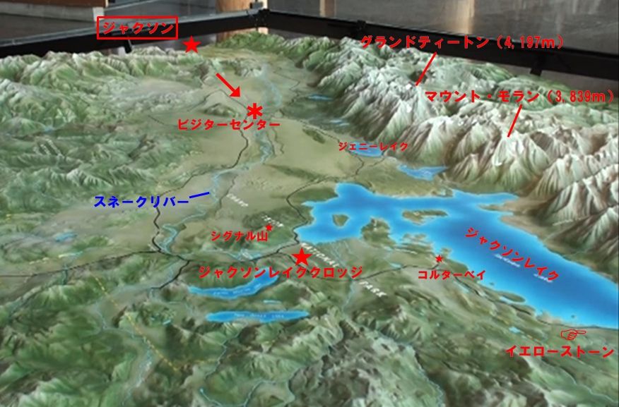 これはグランドティートン国立公園を北側から見た全体像で、我々は、ジャクソンから北上してビジターセンターに来ています。