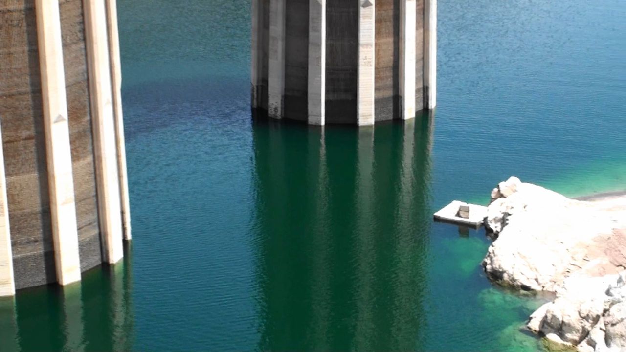 ダム湖に目を移すと、水位がかなり低下?している感じ。