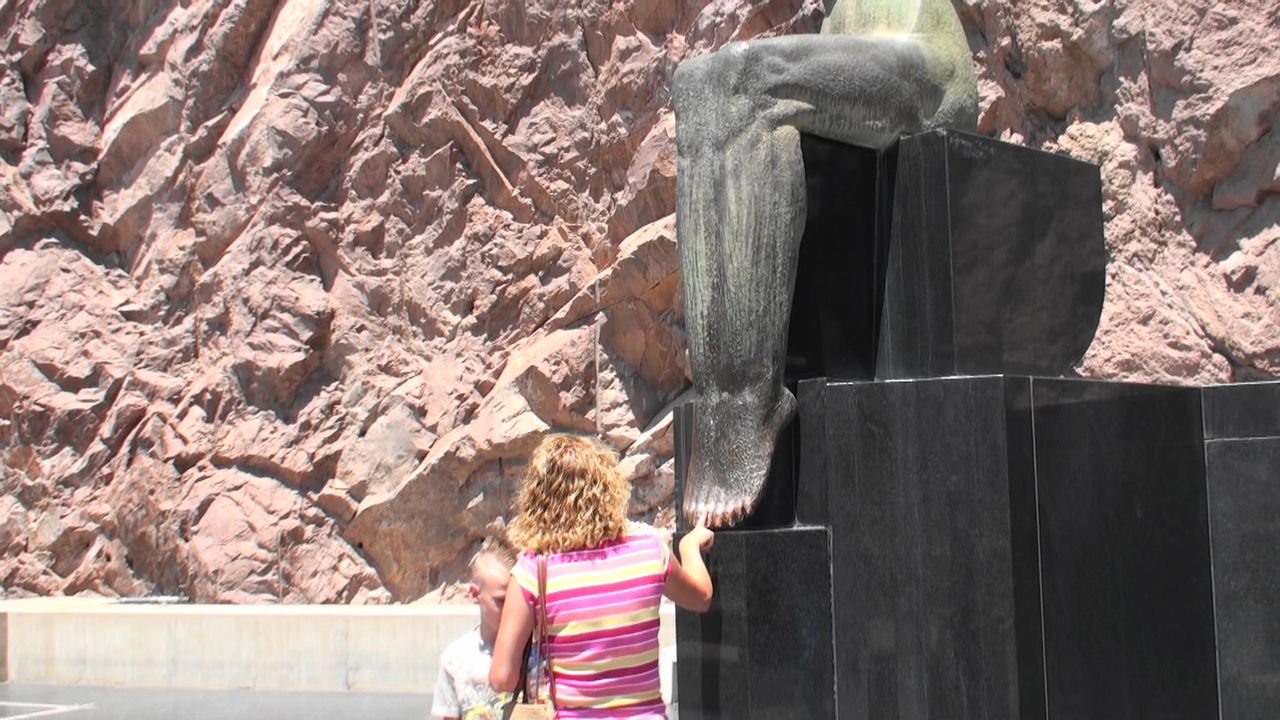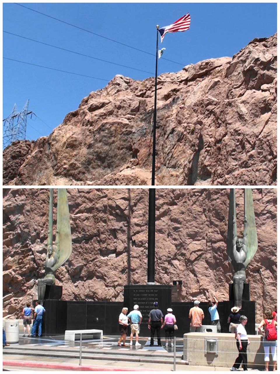 中央の石碑には「ここに国旗(星条旗)を掲げ、巨大ダム建設に従事した人々の偉業を称えています」と説明書きがありましたが、左右の大きな翼を付けたブロンズの彫刻が何を意味しているのか分からないまま...